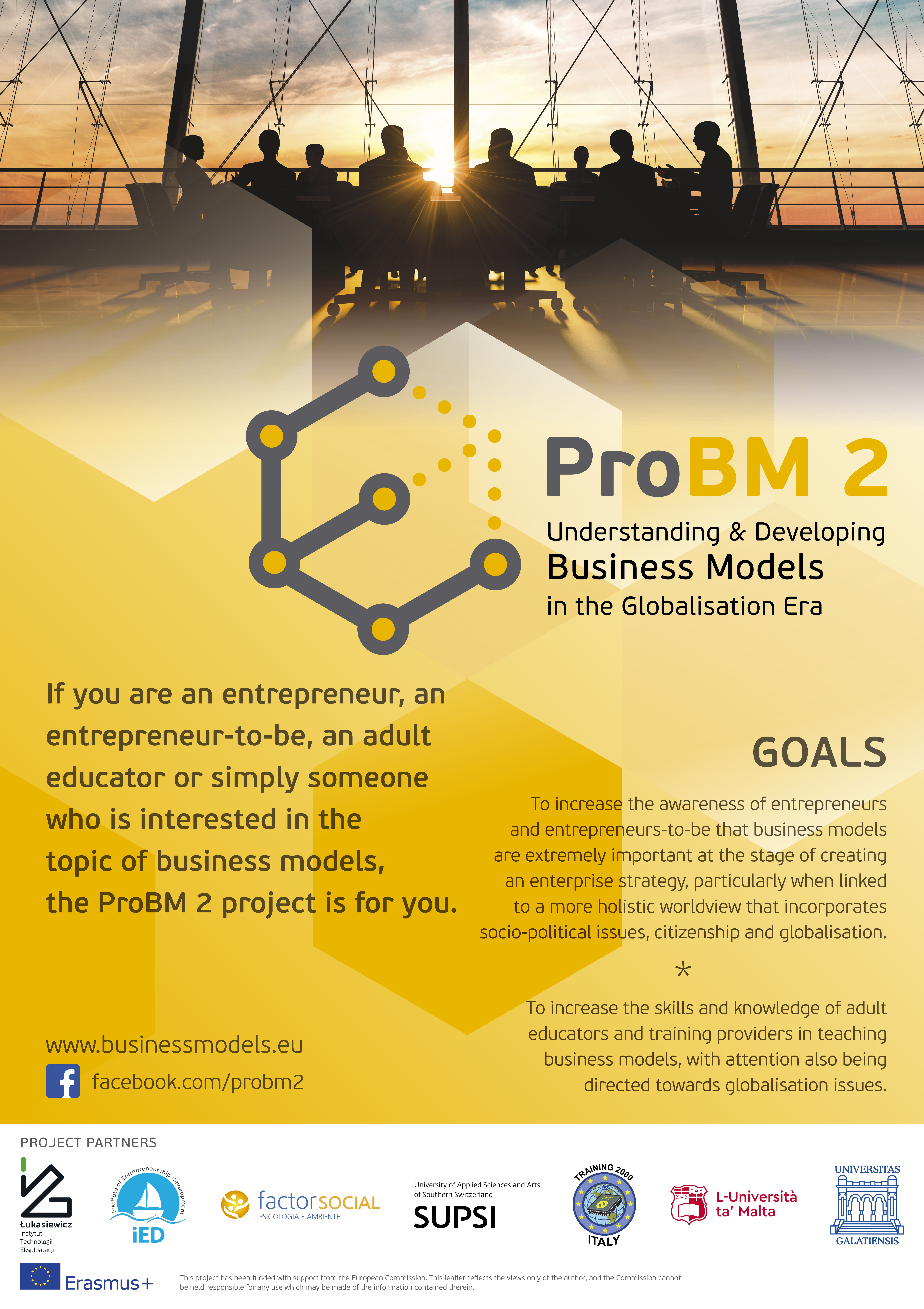 Each year, more and more enterprises are established, but less than 40% of them manage to survive the first 5 years. The main problem is that many entrepreneurs-to-be do not value the power of business models and seem not to pay enough attention to this stage of a company creation. If you are an entrepreneur, an entrepreneur-to-be, an adult educator or simply a person interested in the topic of business models, the ProBM 2 project is for you. |